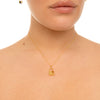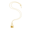 A perfectly scaled way down padlock hangs on a delicate chain. Make it personal - Lira is available engraved with a single upper case letter or number.  Comes with delicate chain.