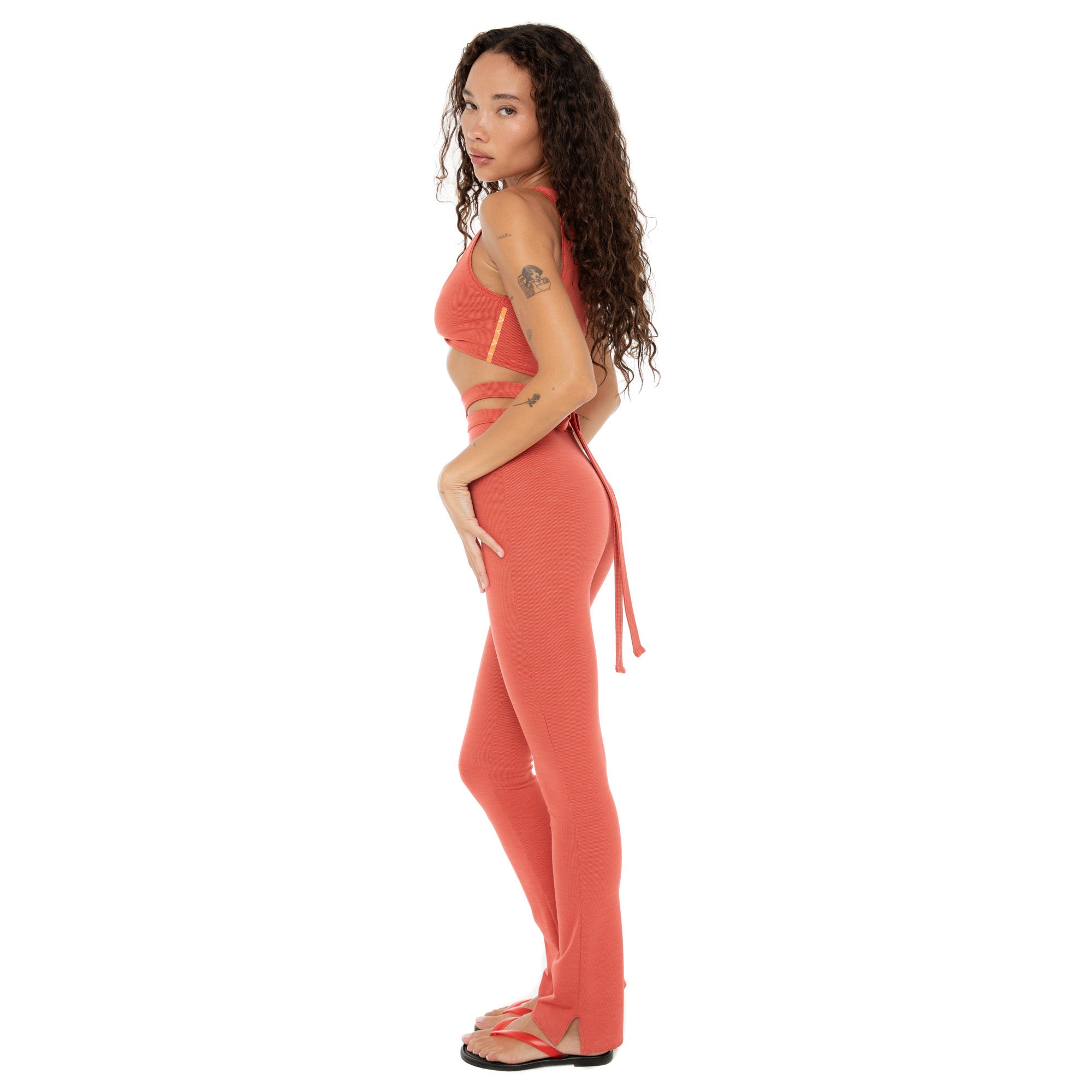 For your inner off duty ballerina. Alda features a second-skin fit with wrap ties at the waist and a bootcut leg. In our lightweight stretch baby rib.