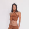 A mirage in halter form. Kiku creates an unexpected silhouette in our thick silk charmeuse with a thick halter neck and completely open back.