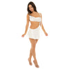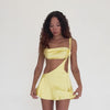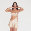 A heavenly abbreviation. Kyften caresses asymmetry in silk, with an adjustable buckle strap for optimal draping.