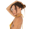 The only important initials. Nimi is personalized with a single, 14k gold-dipped gothic initial on a dainty gold huggie.