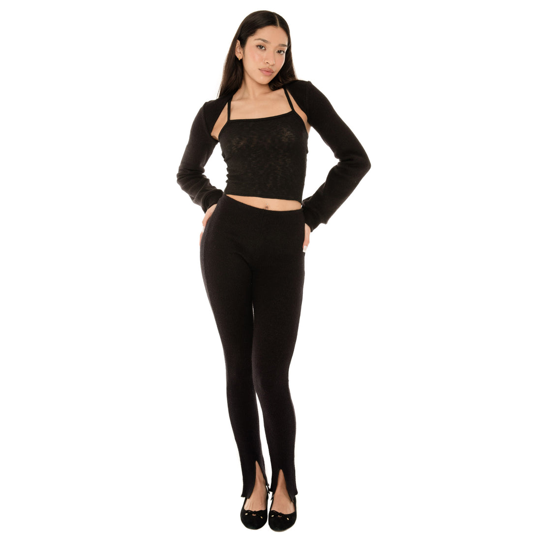 Leggings to live in. Sarei is ribbed with a split-hem and completes a sweater set beyond all desires.