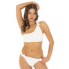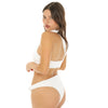 An homage to being pool-side, no water necessary. Knotted hips are complimented with a high waist and high cut leg for a fresh silhouette. Perfect for poolside but intended as loungewear, not fit for swim.