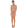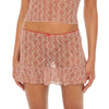 The Sephy Skirt is a sheer lace mini with a ruffled hem, adorned with a scalloped-trimmed waistband and a sweet, subtle bow in the front.