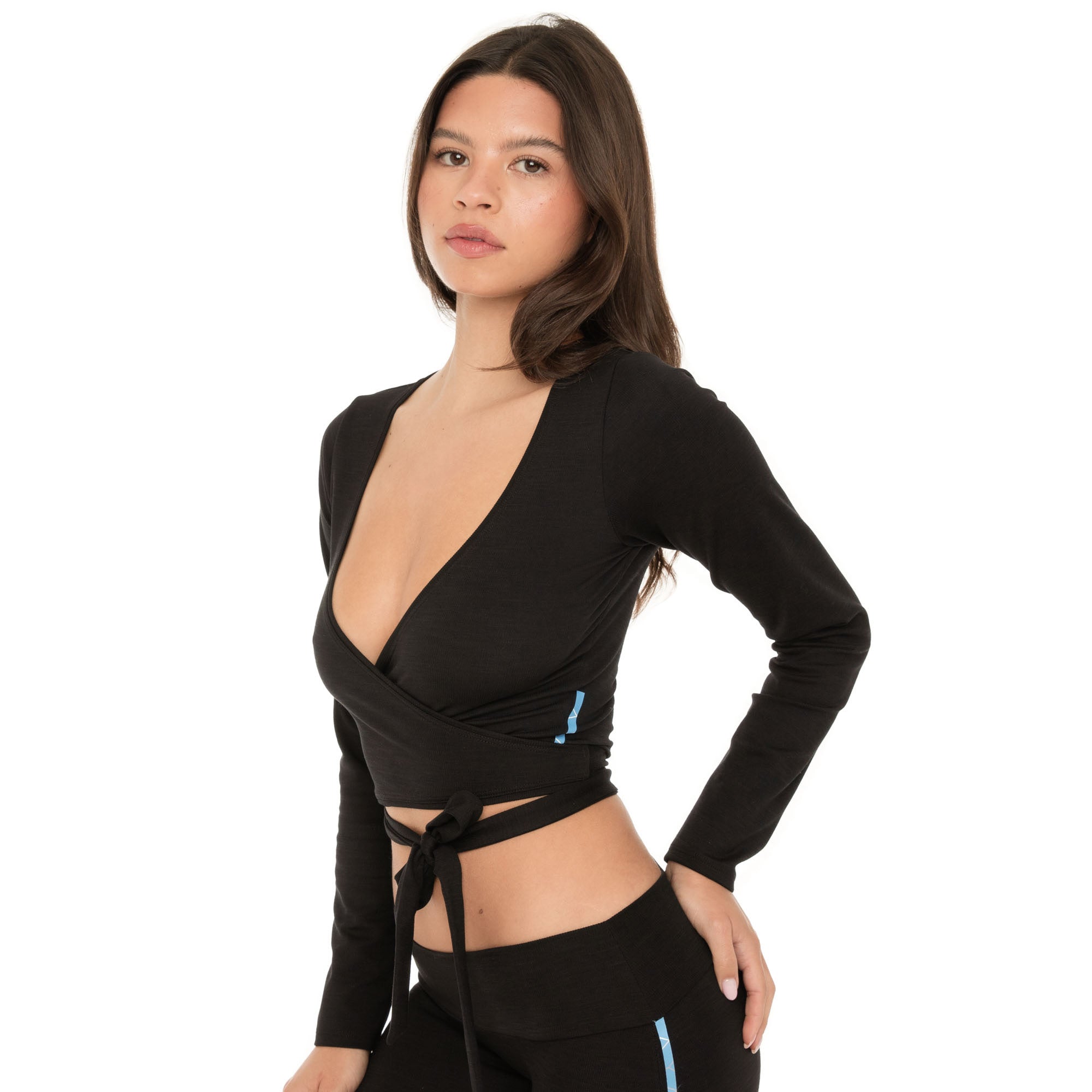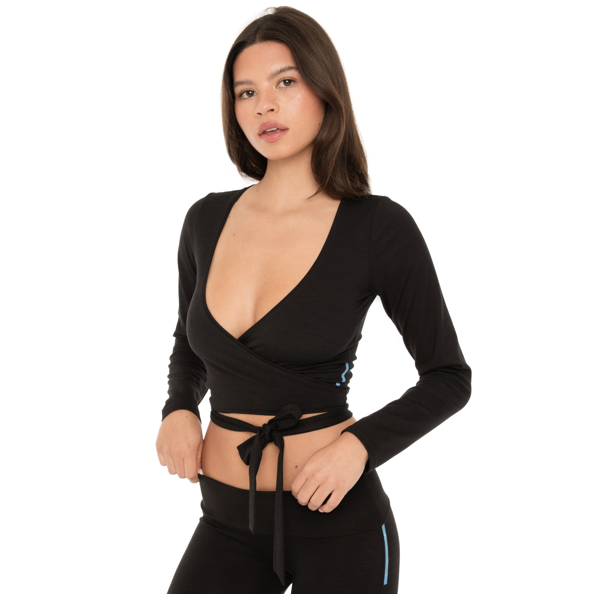 The layering piece you'll reach for over and over again. Nuka features a deep neckline and long wraparound ties in our active micro rib fabric.