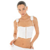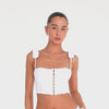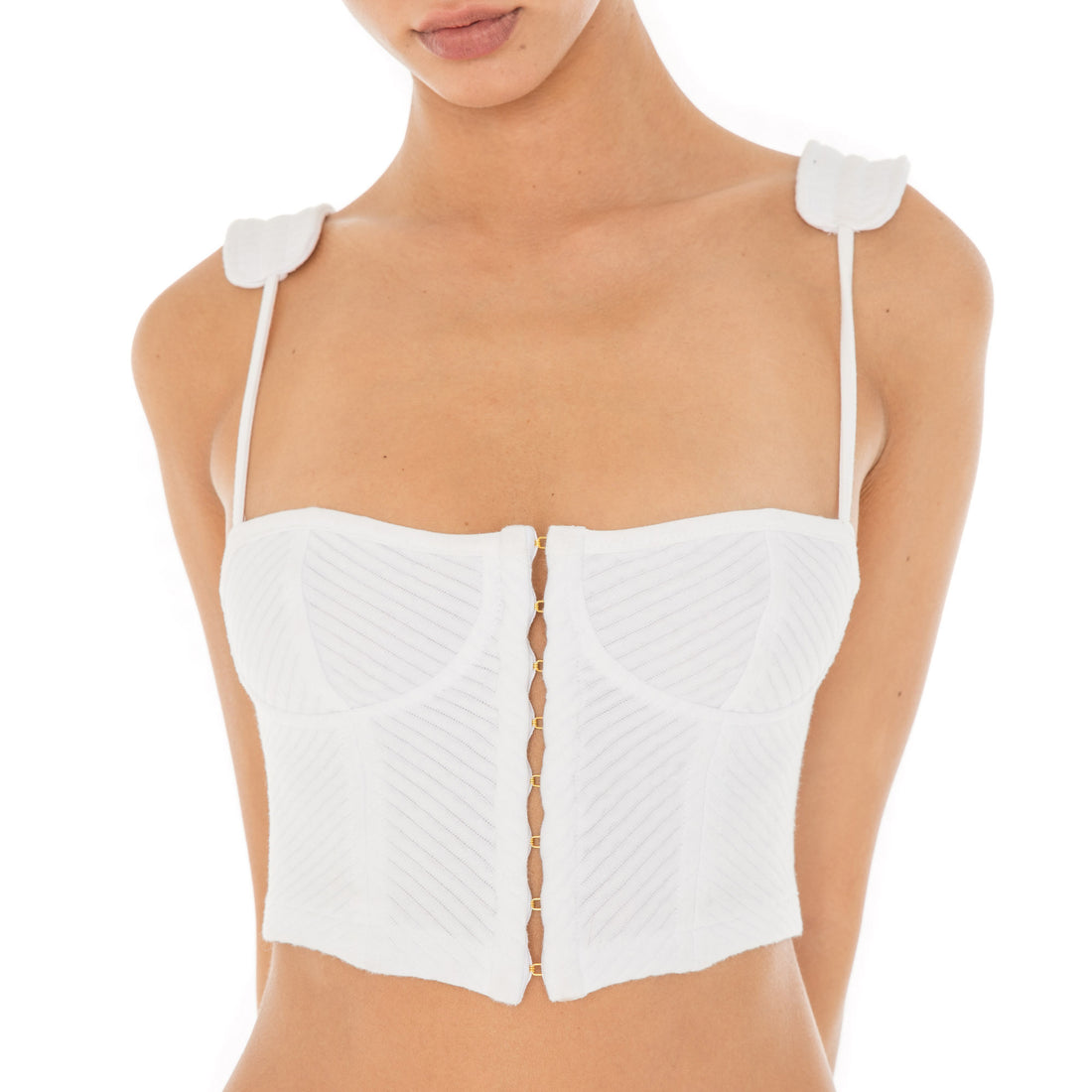 A corset you can cuddle. The Keke tank features a hook and eye placket and minimal demi cups. In our pillowy raised stretch rib.